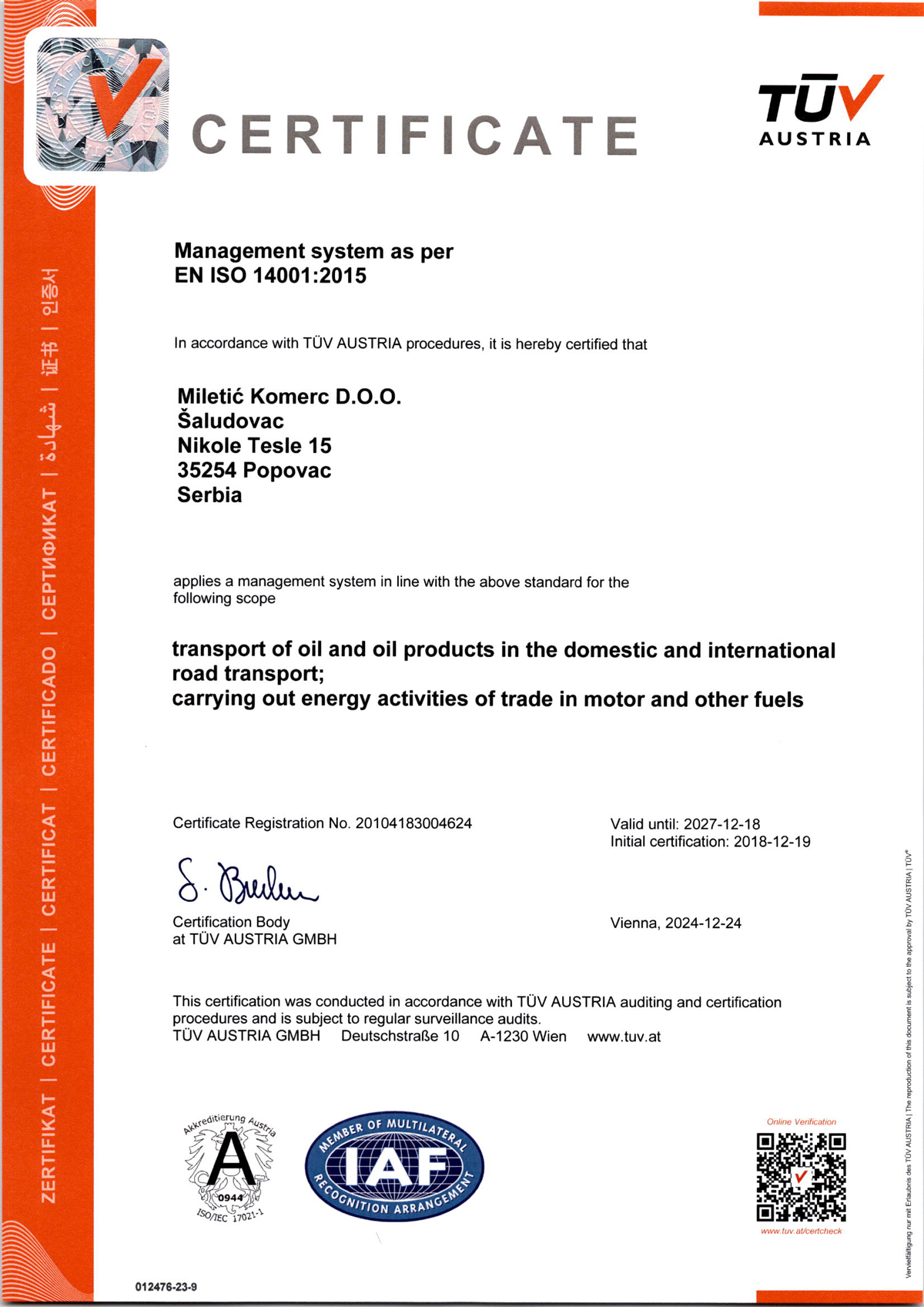MILETIĆ-KOMERC DOO je kompanija čija je pretežna delatnost prevoz naftnih derivata u domaćem i međunarodnom saobraćaju.